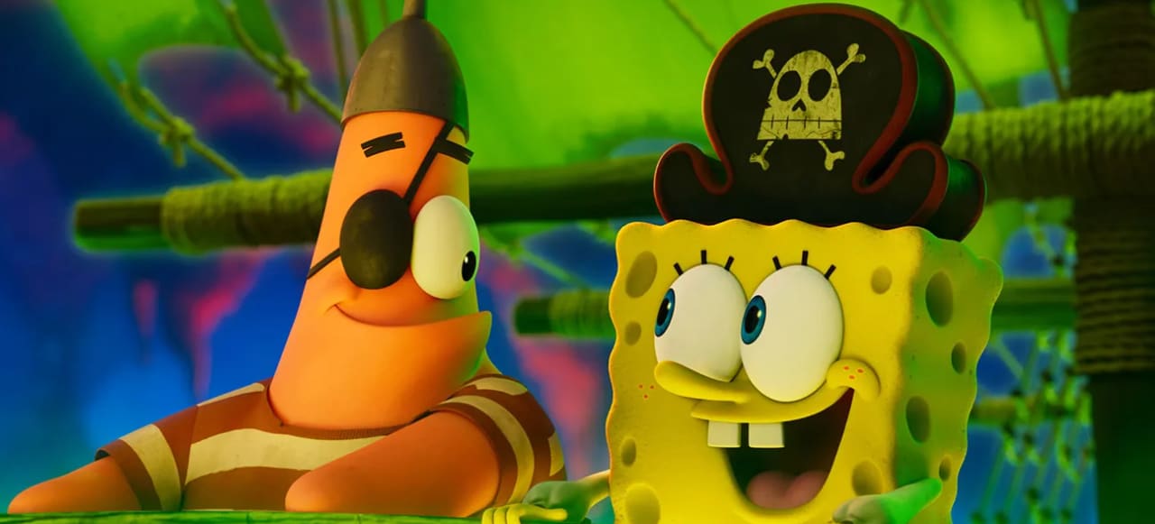 SpongeBob and his Bikini Bottom friends set sail in their biggest, all-new, can't miss cinematic event ever... The SpongeBob Movie: Search For SquarePants. Desperate to be a big guy, SpongeBob sets out to prove his bravery to Mr Krabs by following The Flying Dutchman - a mysterious swashbuckling ghost pirate - on a seafaring comedy-adventure that takes him to the deepest depths of the deep sea, where no Sponge has gone before.